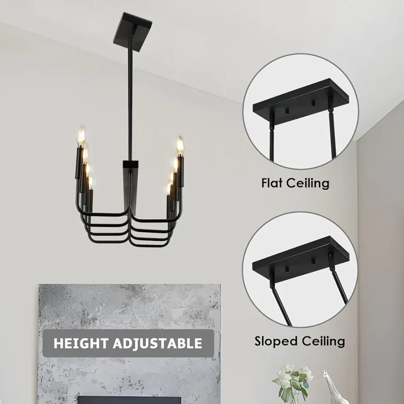 Dimensions & Structure Minimum Height: 18¾ Inches Overall Size: 29" W × 12" D Installation: Ceiling-mounted Lighting Specifications Socket Type: 10 × Candelabra Base Maximum Wattage: 60W per socket Recommended Bulb: B10 Candelabra Torpedo Bulb Voltage: 240V Compatible Environment: UL Listed for Dry Locations